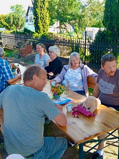 Nach der Danksagung an unsere inspirierenden Musiker erfolgte ein schönes Beisammensein der über 50 Besucher bei Essen und Trinken. Es war ein sehr liebevolles und entspanntes Miteinander bei strahlendem Sonnenschein.