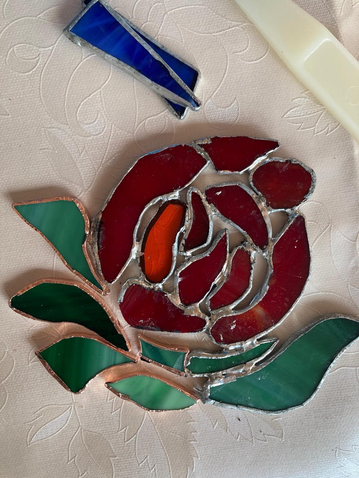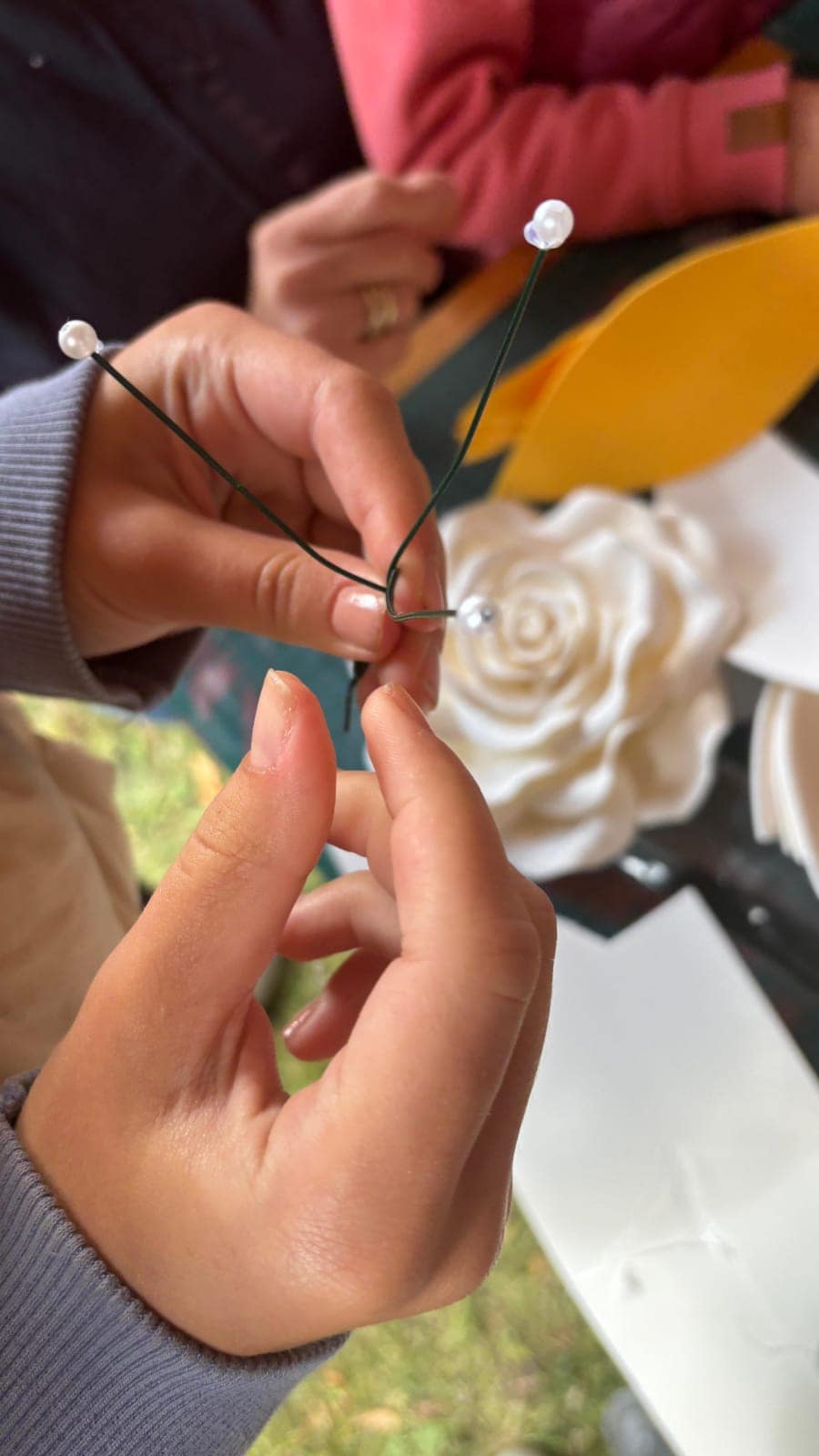 Dann ging es in die Gruppenarbeit. Die Glasgestalterin Melina Gödeke aus Werben und die ukrainische Blumenkünstlerin Liana Linchenko wurden von den Kleinen und Großen stark gefordert. Es entstanden großartige Blumen aus Glas und Einzelblumen aus Moosgummi, die zum Teil noch farbig weitergestaltet wurden. Zwischendurch immer wieder Musik mit Mathias und Maria Ott. Ein Junge, der am Projekt teilnahm, konnte so seine Liebe zur E-Gitarre entdecken und so endlich ein schönes Hobby finden.