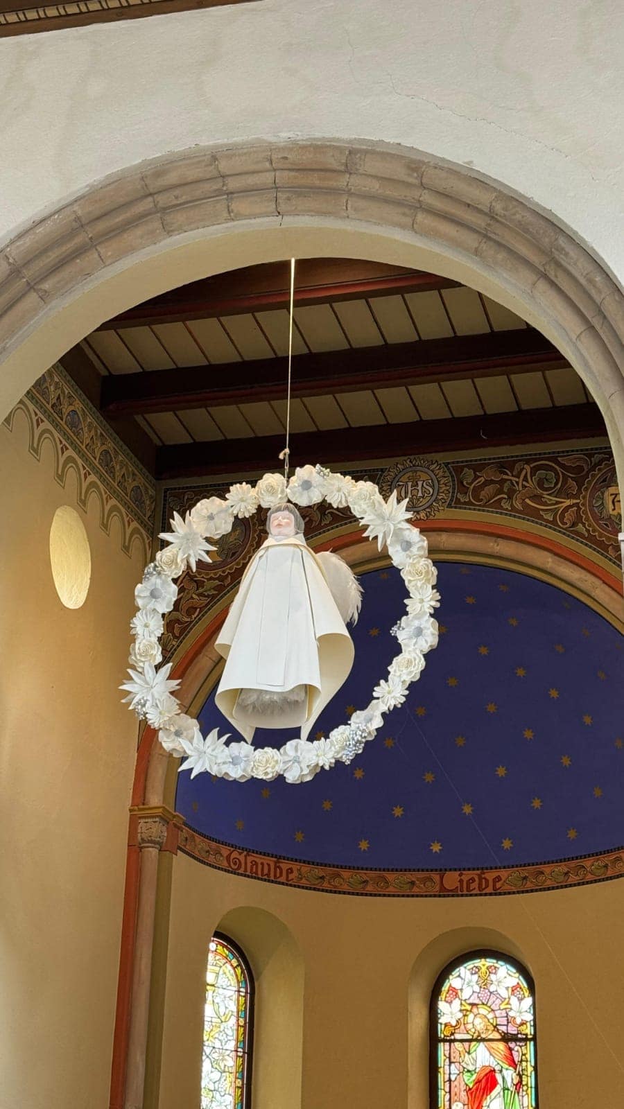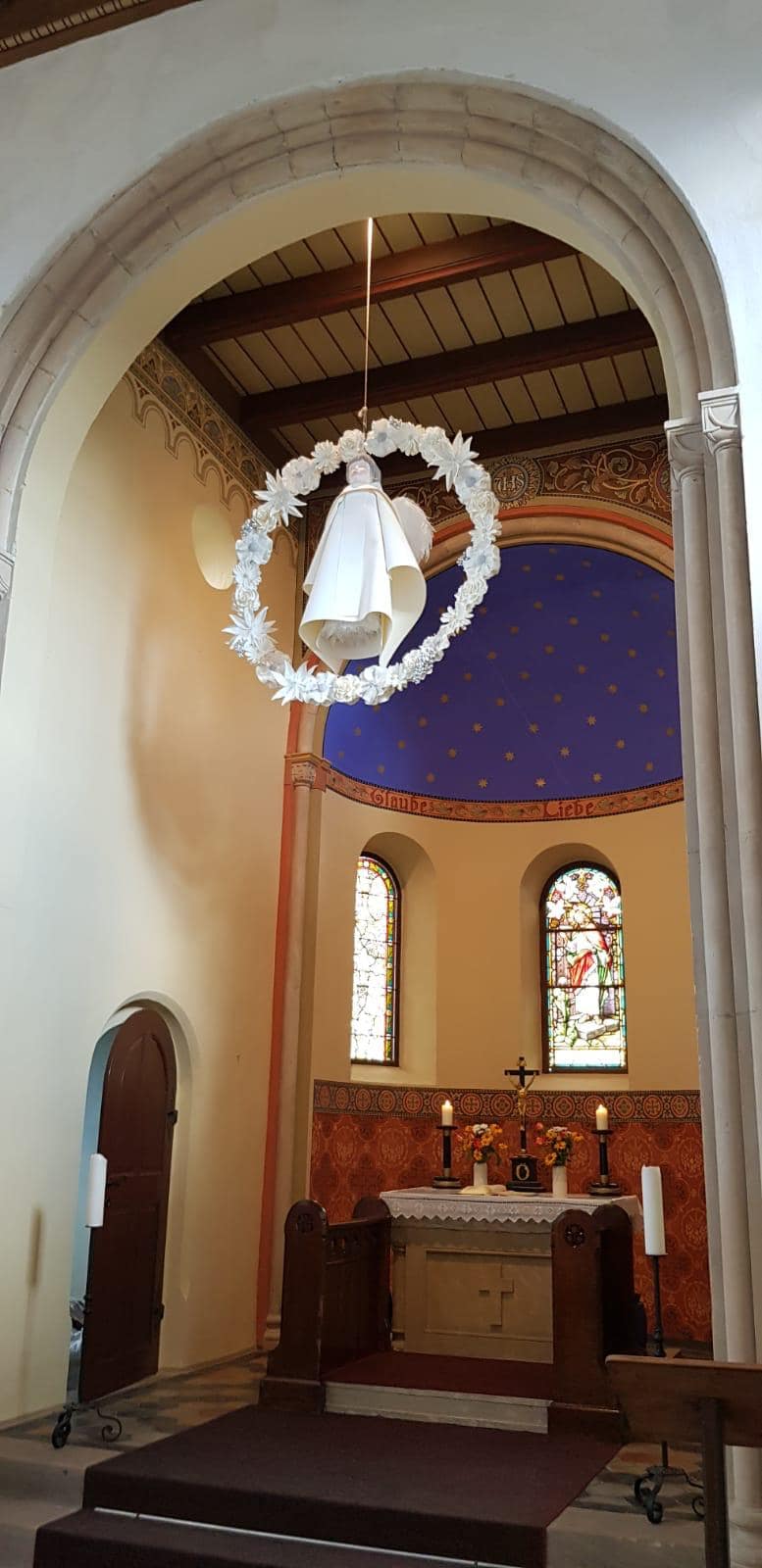 Gemeinsames Projekt war die Gestaltung unseres Schutzengels, den wir aktuell im Chorraum befestigt haben. Liana L. hat hier eine große Vorarbeit geleistet, die Kinder haben dann fleißig mitgestaltet und geklebt.